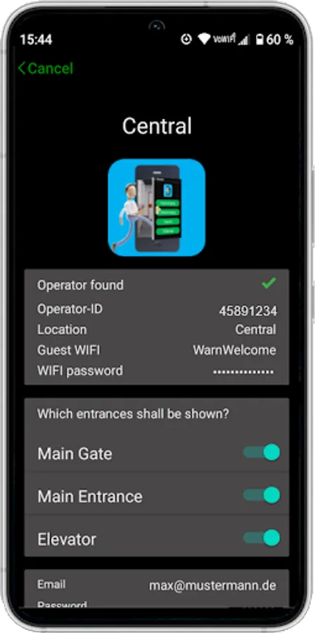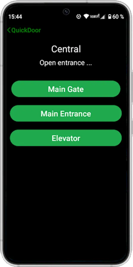 The QuickDoor app requires that the relevant entrances are connected to a QuickDoor-HUB.