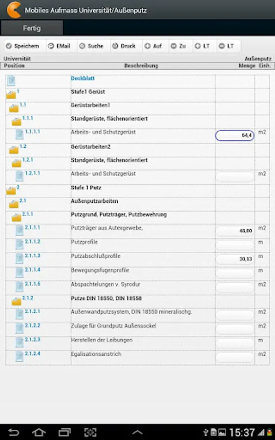 Portable Measuring and mobile offer for California.pro. Imported from California.pro exported Bid document data. Allows you to capture, store, print and send by oversize and offer information.