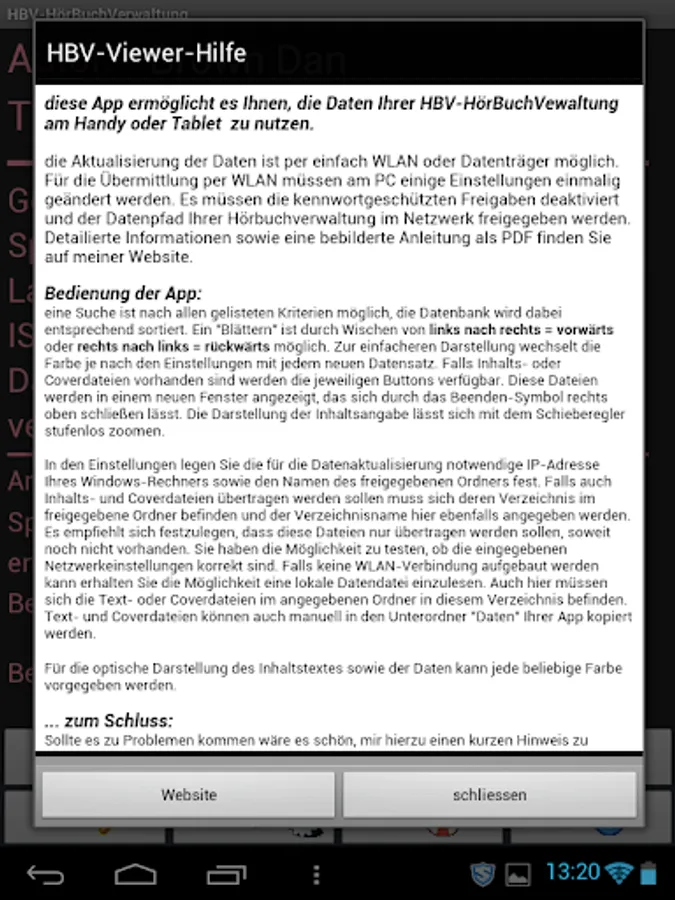 This app allows you to use your HBV audiobook administration on phone or tablet