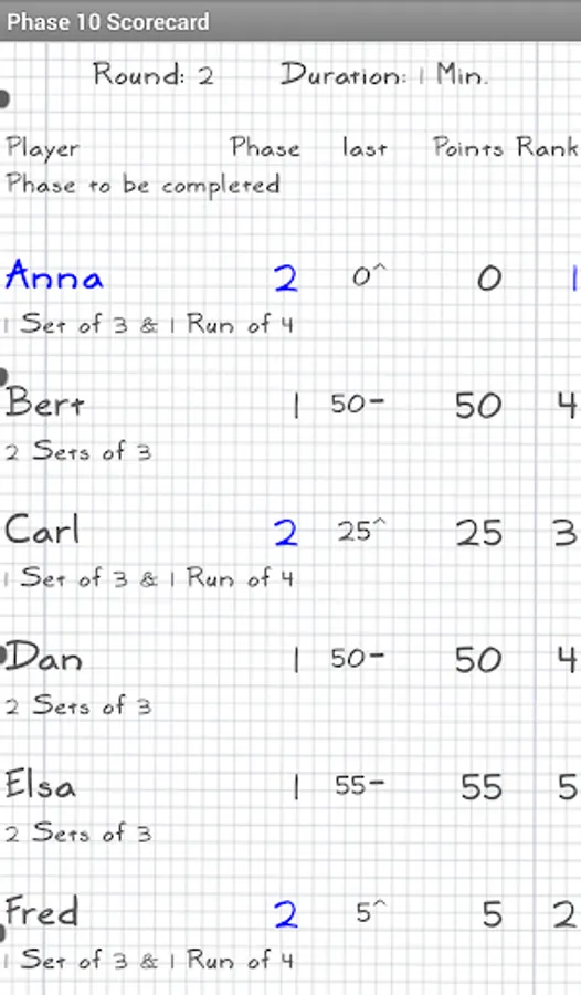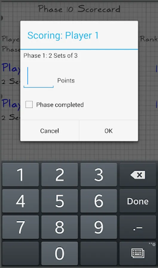 Manage the phase 10 card game (standard or master edition) scored points and phases for 2 up to 6 players.