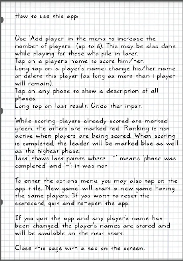 Just tap on a player's name to score him/her; tap and hold to give the player a clean name.