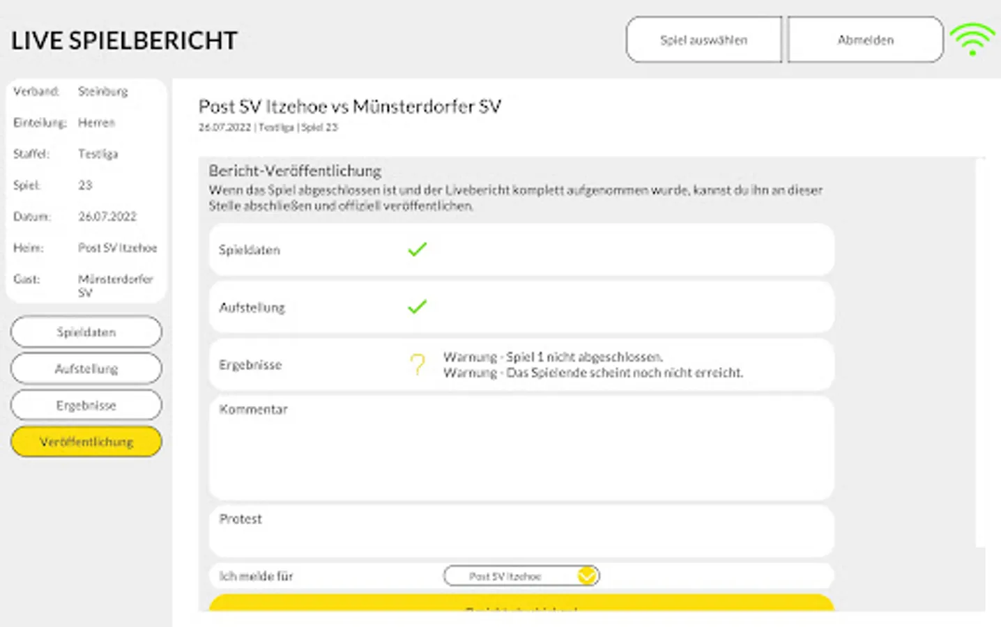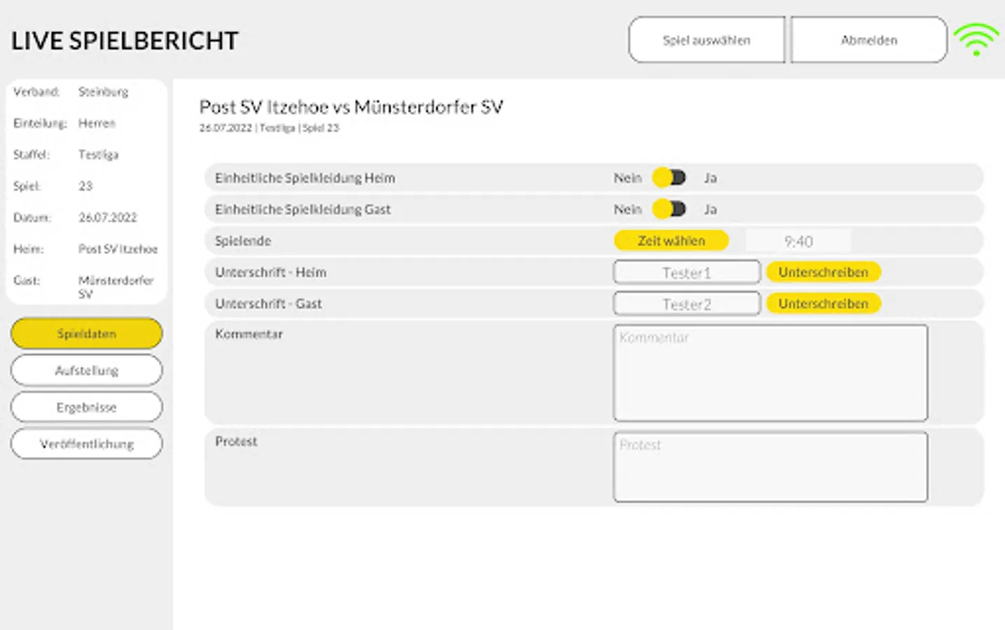 The app enables intuitive use of the live game report from Web4Sport on any mobile device. Regardless of the location and network coverage, the scores can be entered into the system.