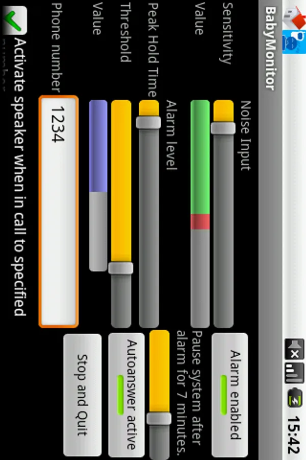 Whenever "alarm value" exceeds a limit (which is called "threshold", BabyMonitor calls the specified phone number.