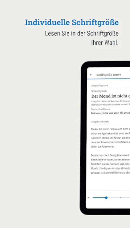 Configure your app UI for optimal readability by adjusting the font size in articles and choosing light or dark mode appearance.