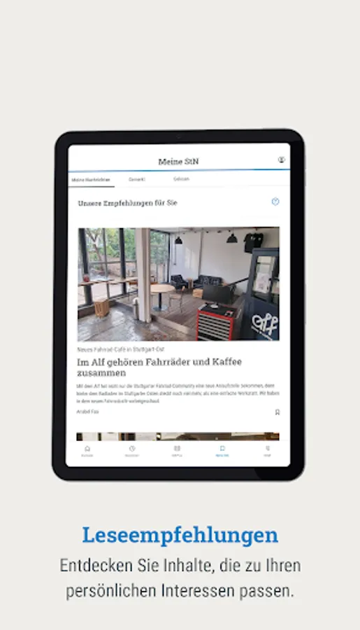 Discover your personal reading recommendations under “My StN”. Easily read your saved articles and quickly find what you have already read.