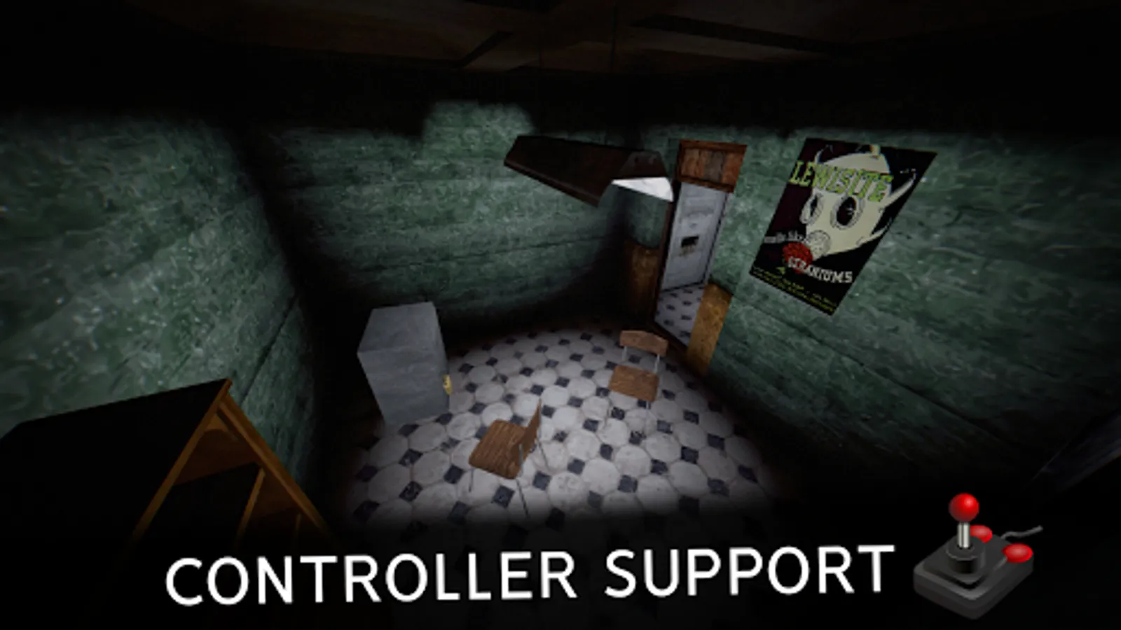 Hide and try to stay safe, find items or tools to succeed and escape with the elevator.