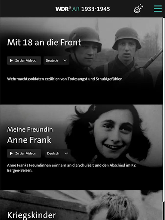 Let augmented reality take you right into the stories, and experience up close how contemporary witnesses experienced the “Third Reich”. The last contemporary witnesses are at an advanced age, some over 90 years old. They were young during a time of horror. Now you can bring them into your home or classroom with the app WDR AR 1933-1945. Also in English!