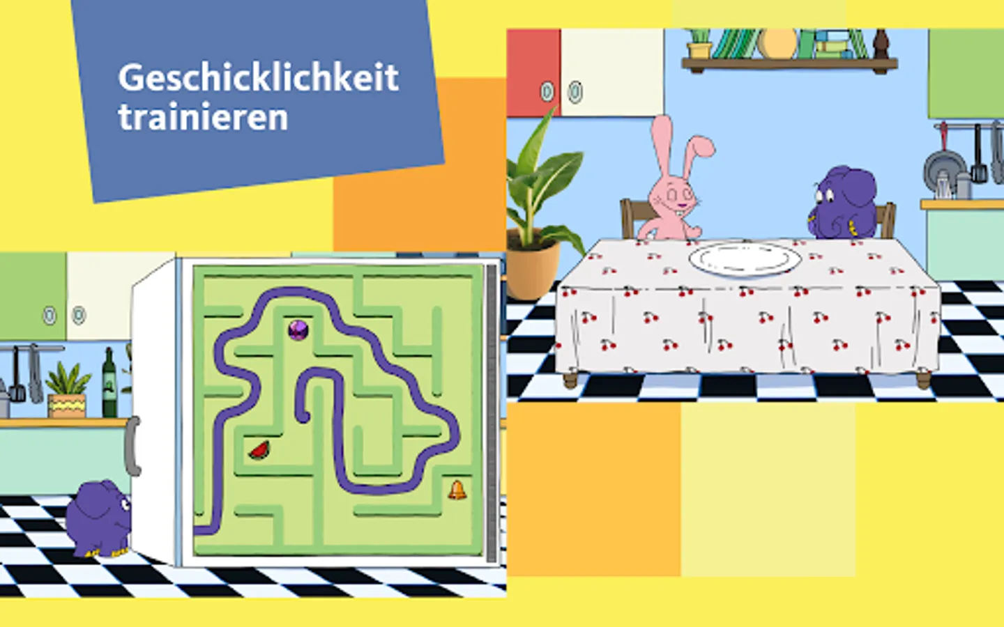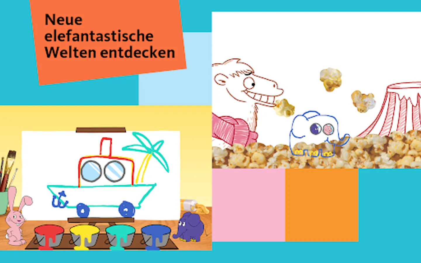 Get active and creative with the games yourself! Discover the colorful world of the elephant and dive into different worlds: space, underwater, jungle or a garden.