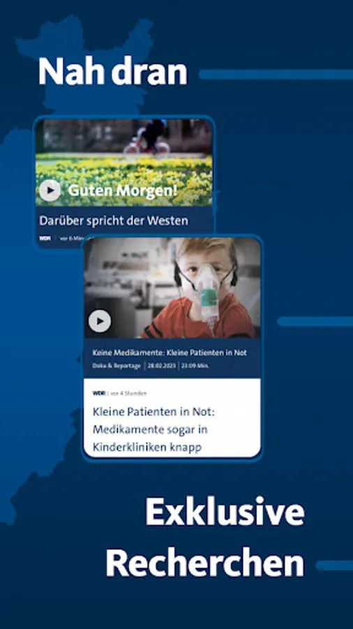 In the headline feed, the app provides an overview of the news. In addition to contributions from the WDR, we also provide you with news from the Tagesschau and Sportschau. In the headlines you will receive the latest issues of WDR aktuell from radio and television on demand.