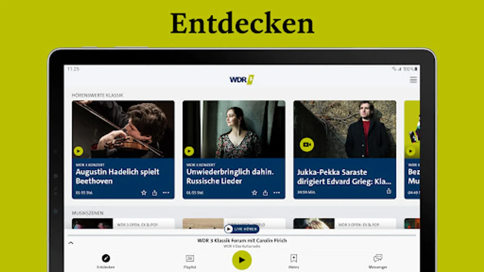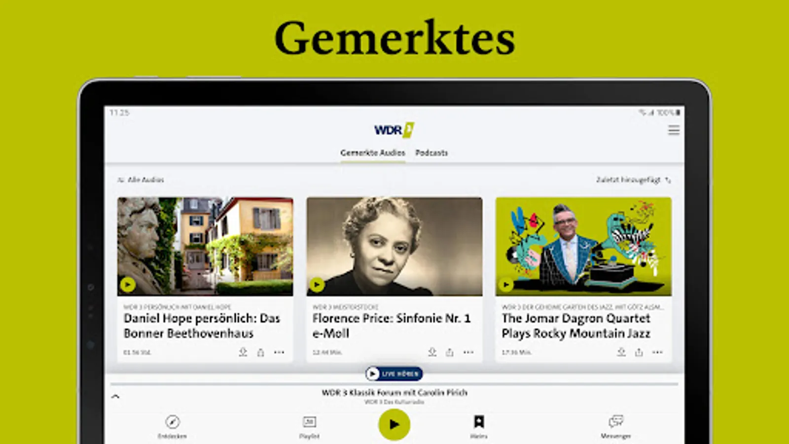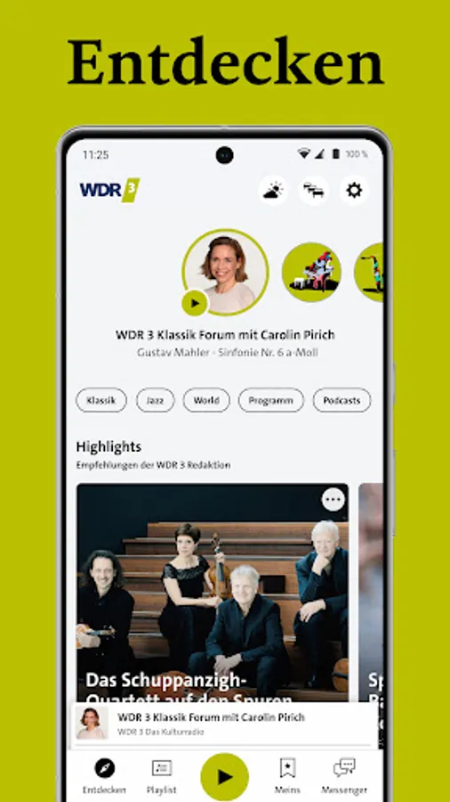 With the WDR 3 app, you always have your culture radio with you: live radio and podcasts, current culture reports and documentaries, classical music and other exciting music scenes.