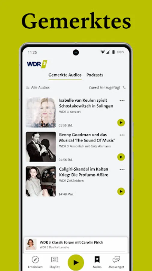 Are you particularly interested in certain topics or programs? Under "My WDR 3" you can create your personal collection of saved audios and also browse and subscribe to the content of individual programs.