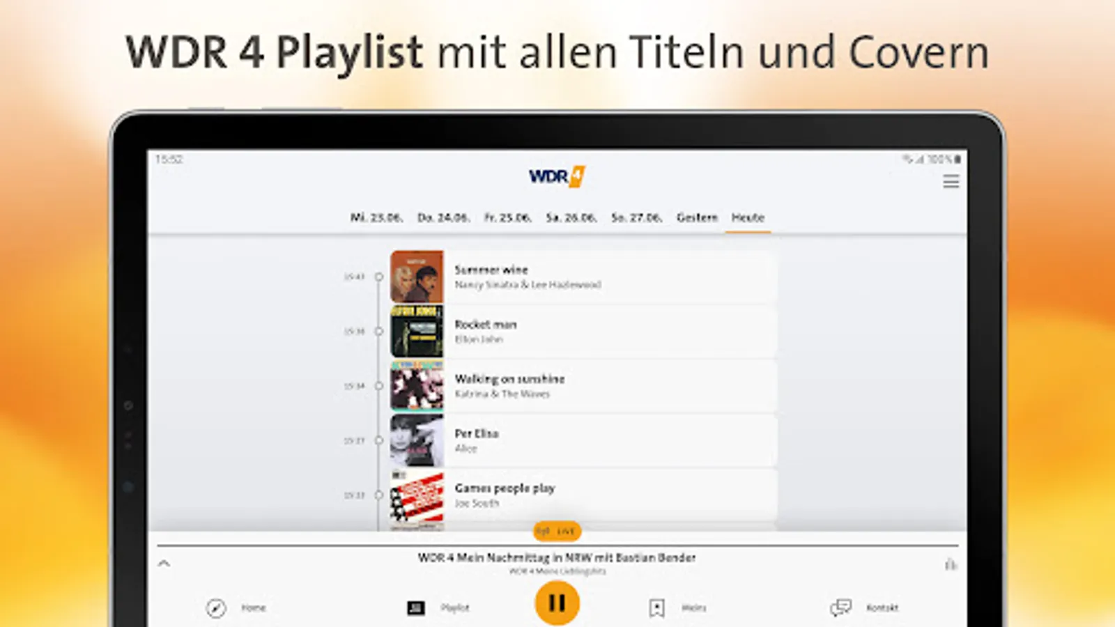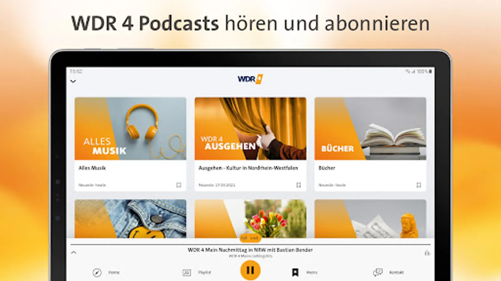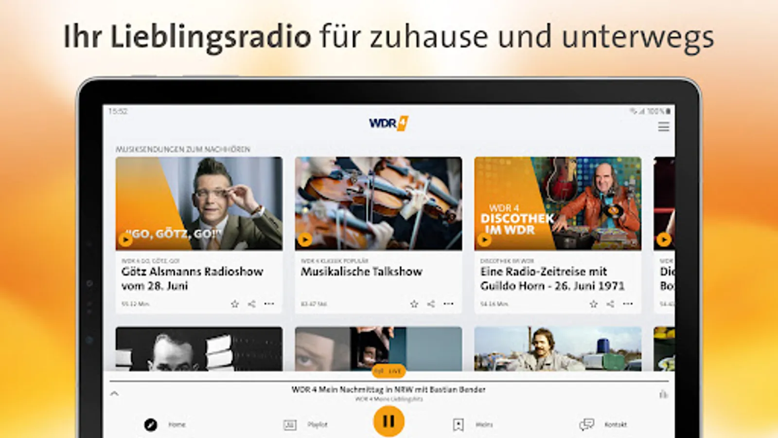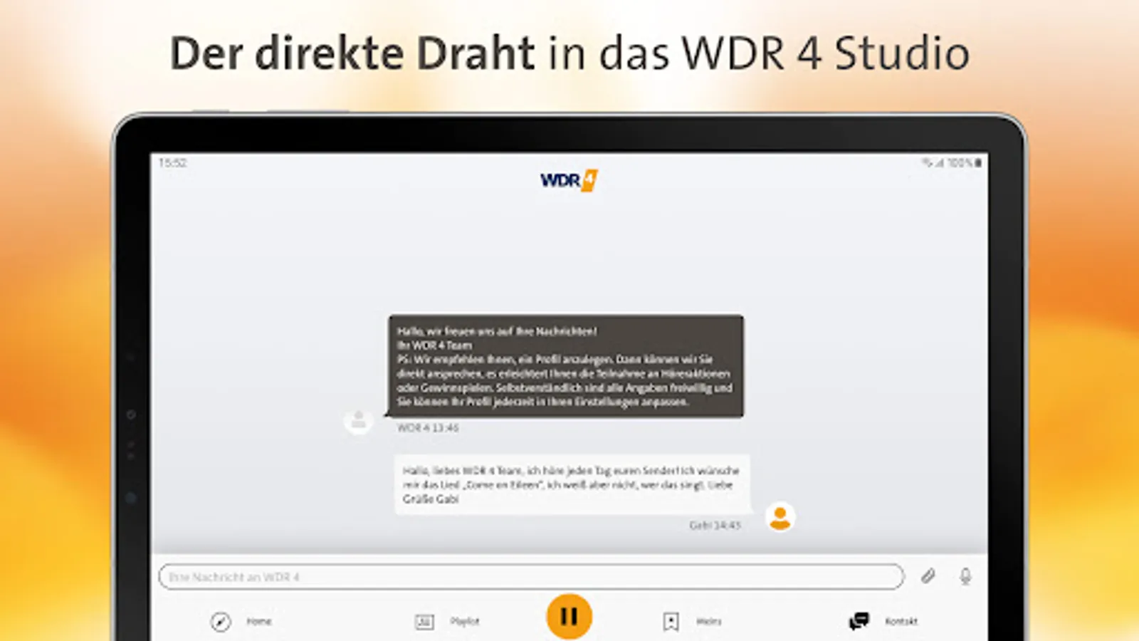 With the WDR 4 app you always have your favorite radio station with you, wherever you are.