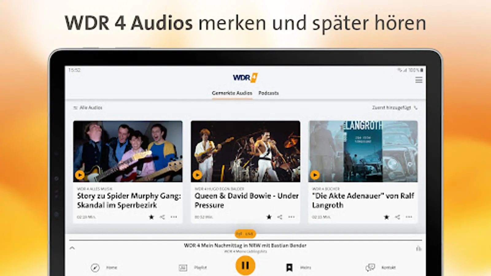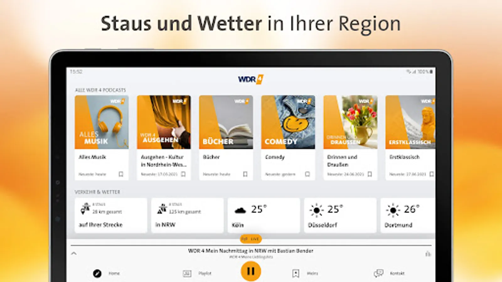 Customize WDR 4 in the app to suit your needs. Personalize weather and traffic updates, curate your content and subscribe to your favorite audio, podcasts and shows.
