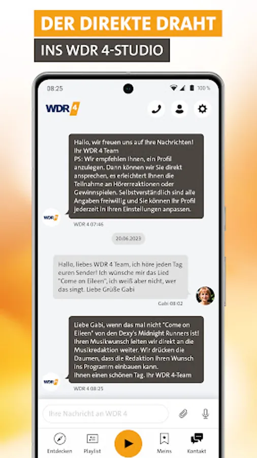If you would like to send us suggestions, praise or criticism, we look forward to receiving your feedback at wdr4app@wdr.de or via the app's contact function.