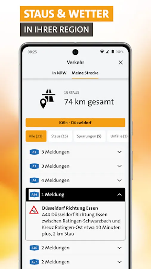 In the app you will always find the current edition of the radio news "WDR aktuell" and of course the information from the traffic and weather department. Personalize the reports for the weather in your area or the traffic conditions on your route.