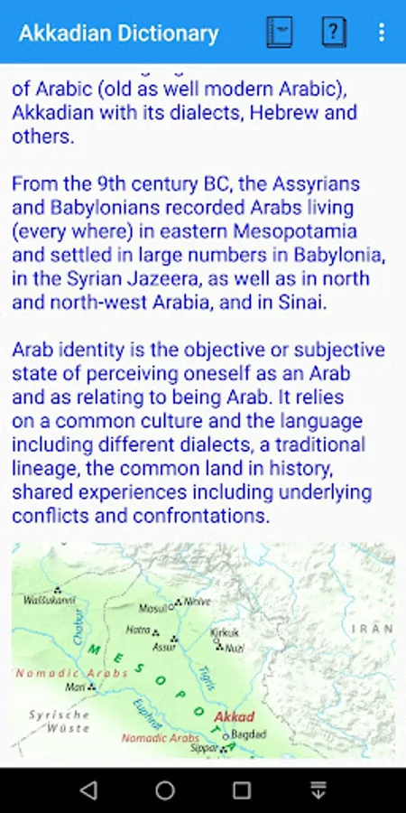 Contains vocabulary of over 6400 words most with Logograms and Cuneiform. The dictionary provides the meanings in English, German and Arabic. Words which are similar to Arabic or one of the Iraqi dialect are highlighted. This makes over 50% of the vocabulary in this dictionary. Many sentences are included with interpretaion in Arabic.