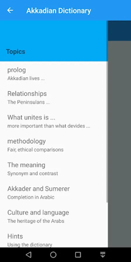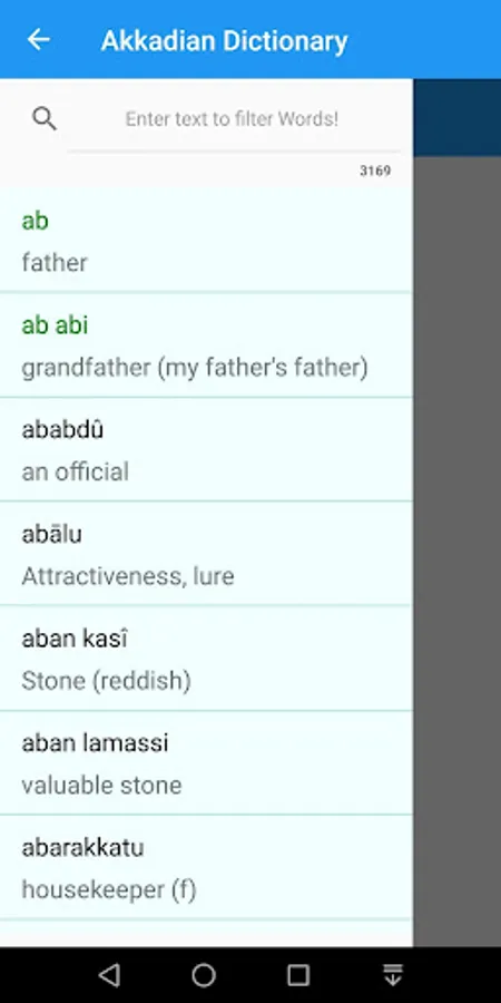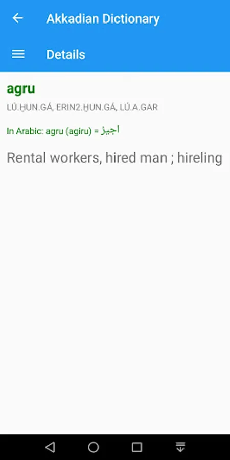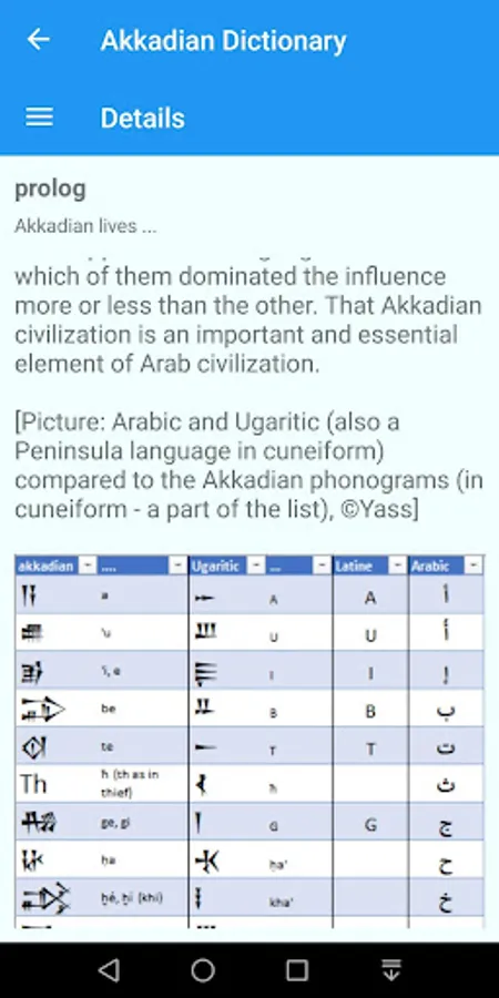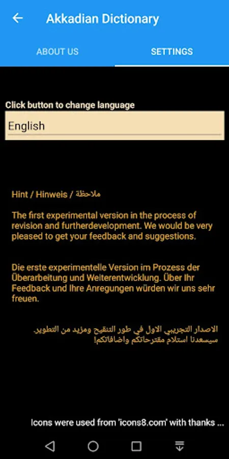 Search input could be in the selected language (En/De/Ar) or in Akkadian (latin characters).