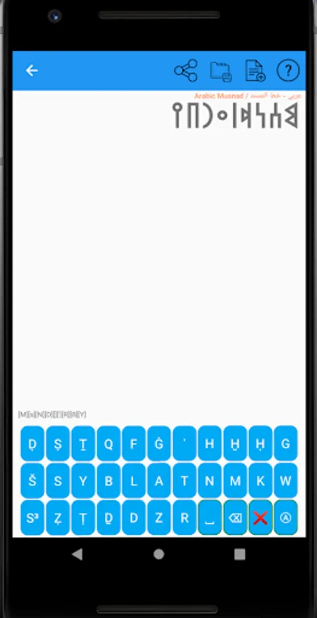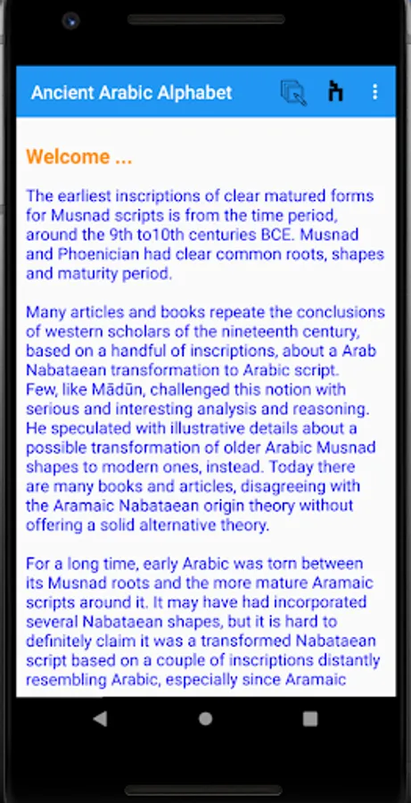 The App can be used to write texts in ancient Arabic Alphabet "Musnad". This can be easily done using the keyboard, which allows entring text in Arabic, Latin, or Musnad letters. The content can be locally stored, shared or copied and pasted into any other application that supports the global Unicode.