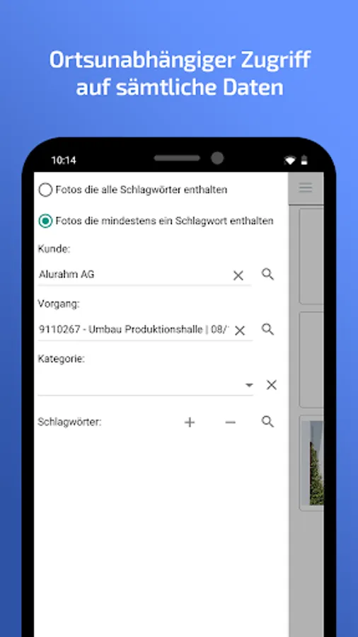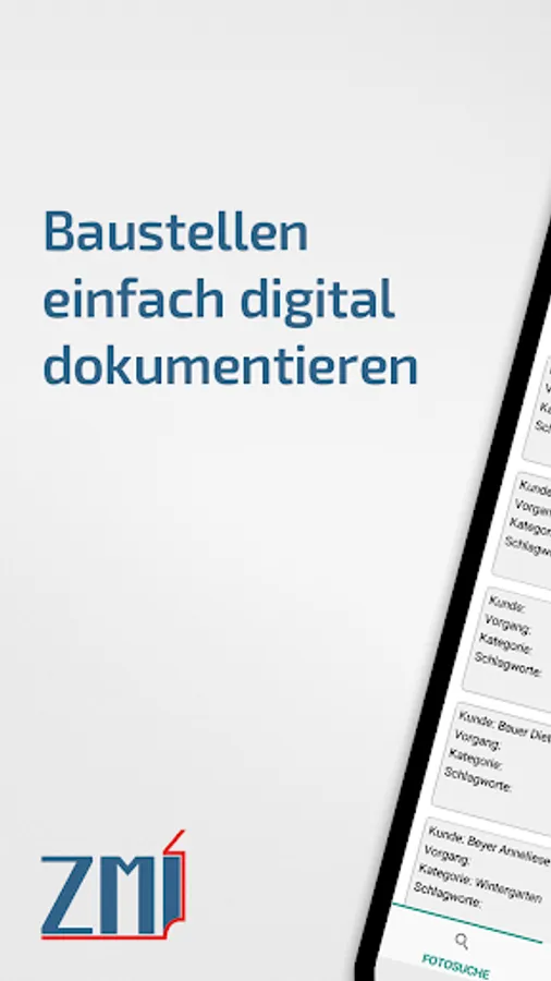 With the ZMI - PhotoArchive App, the current work status on the construction site or a reference project for future sales talks and the associated images can be documented on a mobile device using your tablet or smartphone. The photos, which can not only be accessed in a process-related manner but also by means of a keyword search, are also made available directly in your customer management (CRM). This ensures that your employees in the back office always have access to all archived image data.