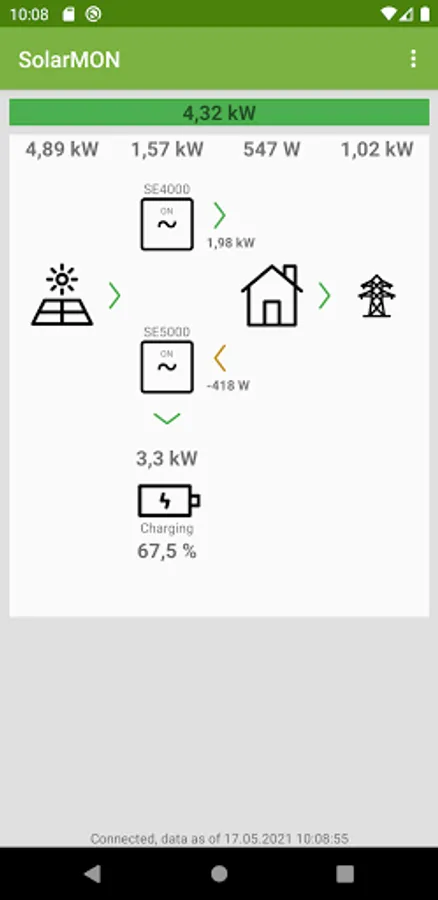 4) SolarMON shows you a lot of data that is not available in the SolarEdge monitoring, e.g. simple PV excess production view, temperature of your inverter, state of health of your battery, per-inverter view etc. Check out the screenshots.