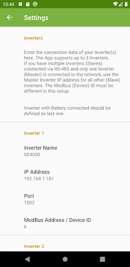 For more details on setting up SolarMON please see the detailed "Setup Instructions" in the App under the main menu or here http://www.abare.de/docs/SolarMON-SetupInstructions.pdf