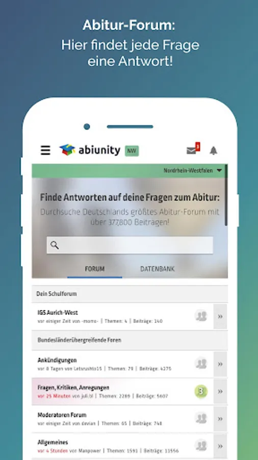 In all federal states, the Zentralabitur is written. This means uniform topics and Abitur examinations for each pupil. These central tasks and topics allow and require almost a possibility of central learning. Such a possibility offers Abiunity!