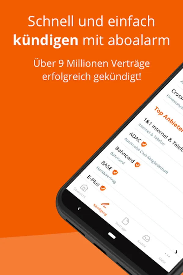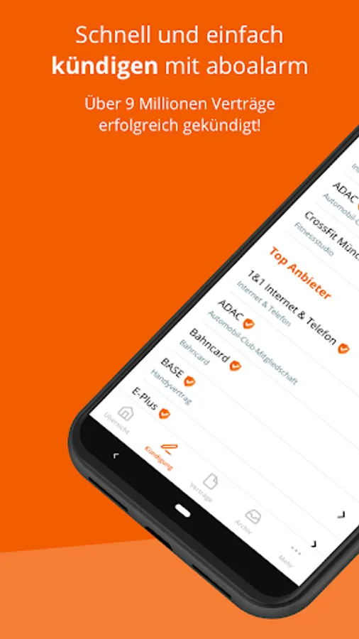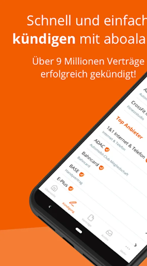 Whether overpriced mobile phone contracts, unused fitness subscriptions or superfluous insurance: canceling has never been easier than with the aboalarm app. Simply select your own contract partner from over 25,000 providers, send the legally verified termination template directly via the app and sit back and relax. aboalarm helps you to cancel your contracts and subscriptions quickly and securely - anywhere, anytime!