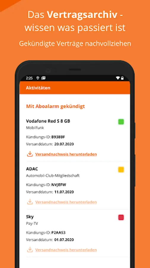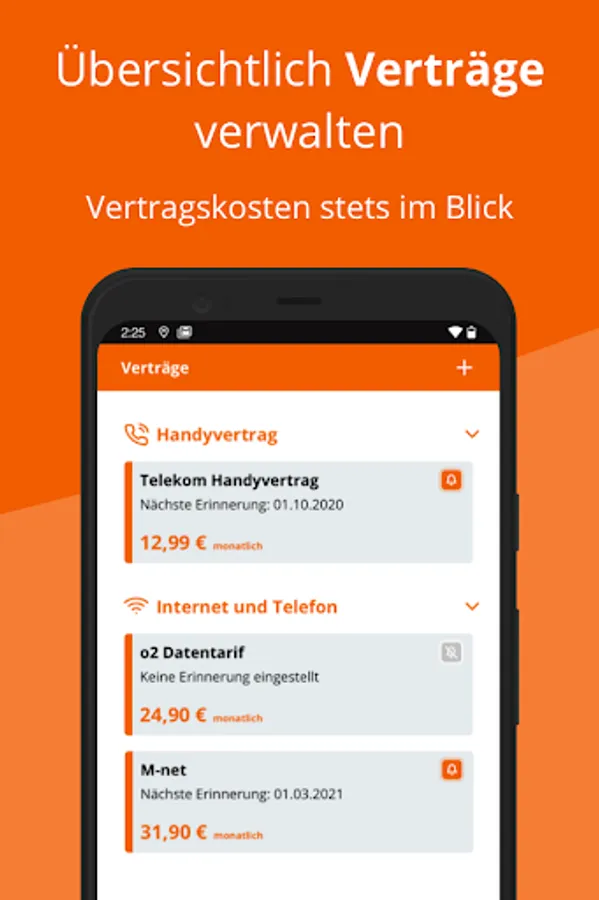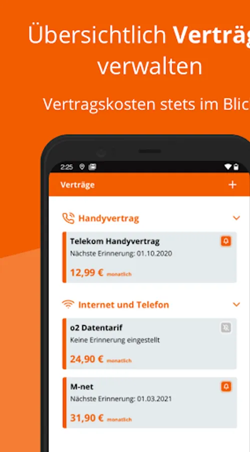 Manage your contracts via the app, let aboalarm remind you of notice periods and cancel managed contracts with just 3 clicks.
