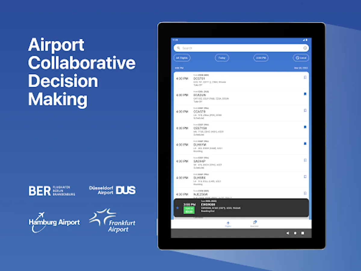 Keep track of and react to all important data and slots of departures at EDDB (BER), EDDH (HAM), EDDL (DUS) and EDDF (FRA) with the Airport CDM App. The Airport CDM App supports the operational turn-around process at the airports involved and concentrates the data display in the cockpit.