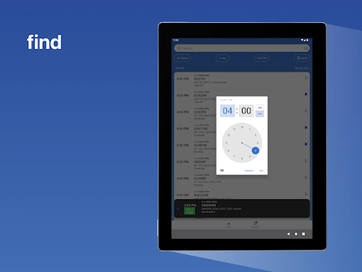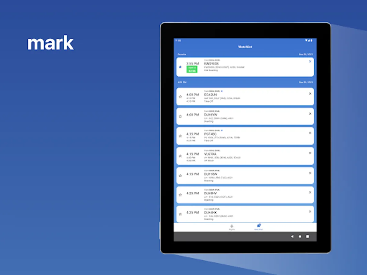 • Planned time, destination airport, call sign, flight number, aircraft type, registration as well as flight status