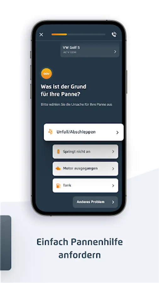Unsere Pannenhilfe können Sie als ACV Mitglied ganz praktisch direkt in der App anfordern – schnell und zuverlässig. Ein leicht verständlich gestaltetes Frage-und-Antwort-System führt Sie in wenigen Schritten zum Ziel. So übermitteln Sie alle wichtigen Infos einfach per Fingertipp – unsere Pannenhelfer finden direkt zu Ihnen und sind bereits bestens vorbereitet auf das Problem, das Sie mit Ihrem Fahrzeug haben.