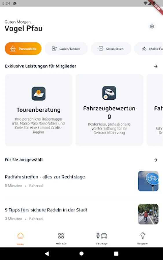 Nutzen Sie zudem alle Vorteile und Leistungen Ihrer Mitgliedschaft direkt in der neuen App und fordern Sie in wenigen Schritten z. B. Ihre persönliche Tourenberatung an.