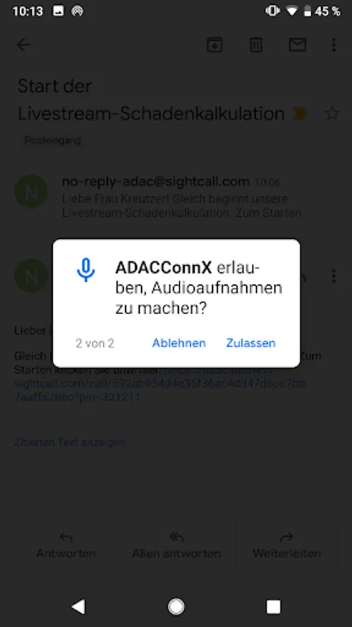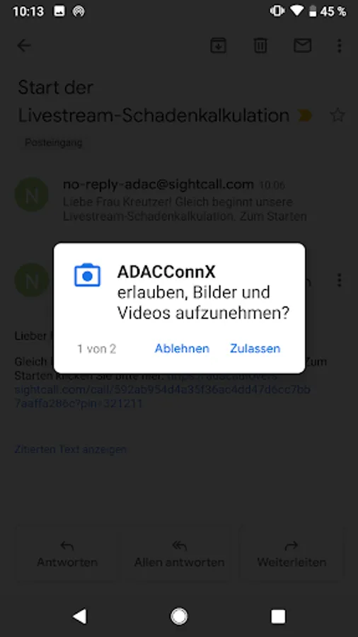 3. The ADAC will send you a second link shortly before the start of the video call.