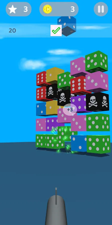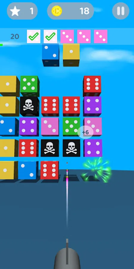 The goal of the 3D game is to shoot moving cubes with a cannon. To complete one level and reach the next, missions must be completed. For each completed mission you get a diamond. You need 5 diamonds to unlock the next level.