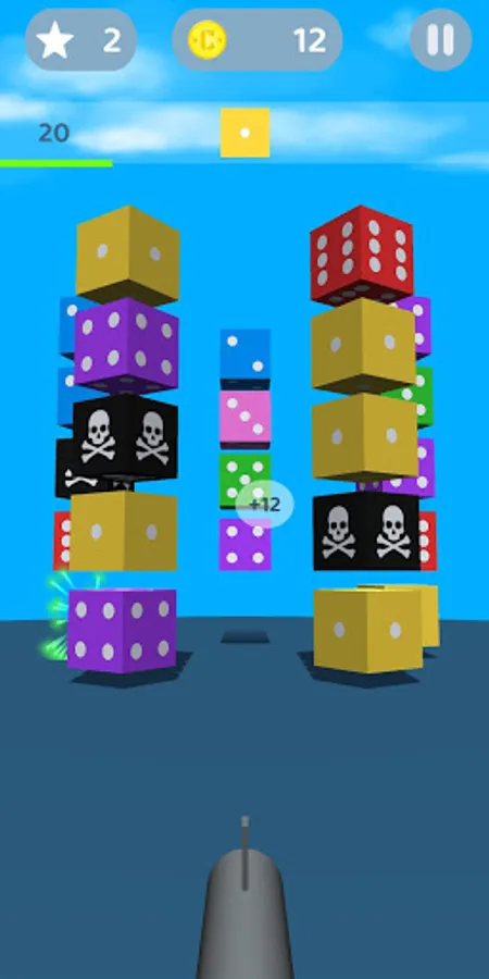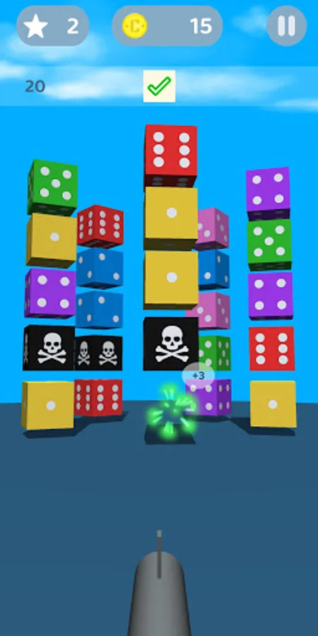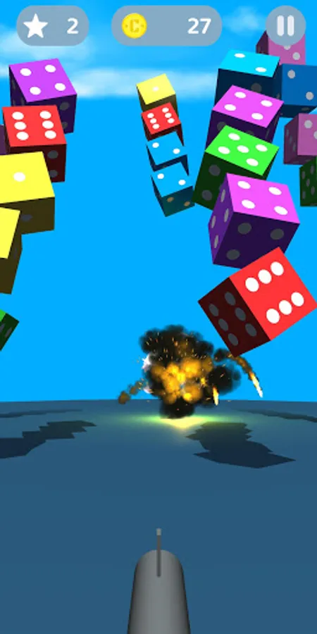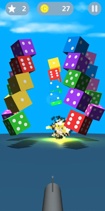 The cannon is fixed. To hit a cube, you have to shoot at the right time. A ball is fired by touching the screen. The number of shots is unlimited.