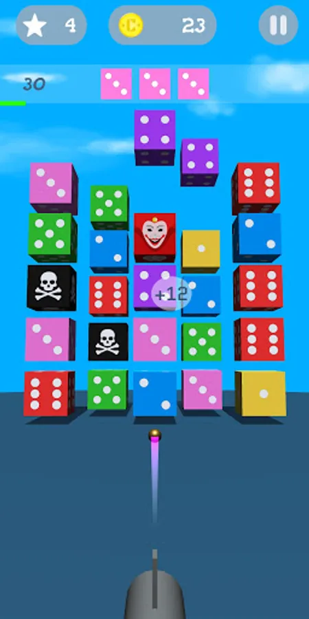 If you hit a death cube, it explodes and the game is over. Once a death cube has reached the bottom row, it starts to turn into a normal score cube from time to time. Once it has turned into a normal cube, you can shoot it safely.