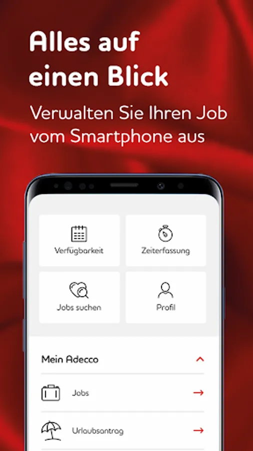 With the "Adecco my job" app, you have extensive functions to design your everyday life with us according to your wishes, directly in your hand.