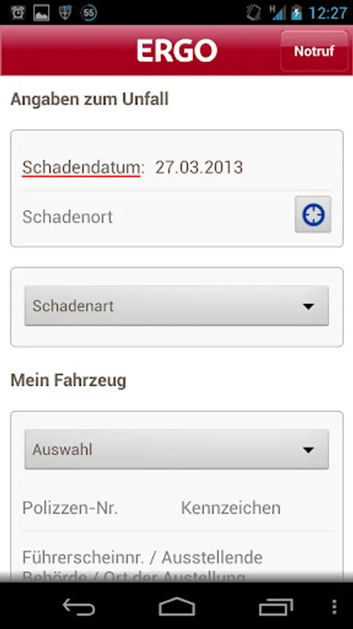 A must for mobile ERGO Customer! To create your auto damage report quickly and easily with your iPhone, use the touch-accident sketch, make proof pictures and send it off to our claims department. Direct from the accident, or later - just as you'd like. We do the rest.