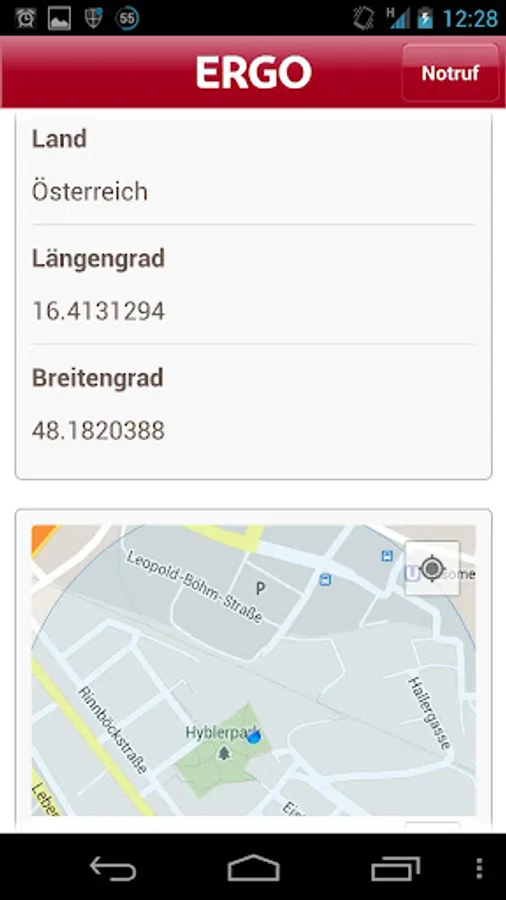 This additional function is chargeable. When enabled, you pay one Euro 2.69 to the provider of this emergency function. As ERGO customer you save the annual renewal fee of 2.69 €. The app also has a test feature that allows the data transfer and the production of the telephone connection can be checked.