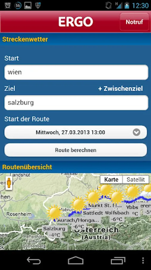 Do it like we do, and trust our weather partner UBIMET who delivers us with the route weather, which we have long dreamed of. Enter a start, destination, date and time, and the app delivers the weather on the whole route.