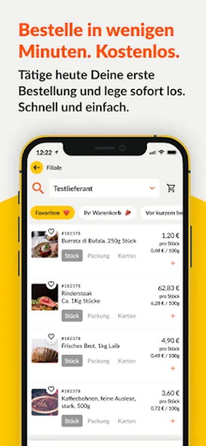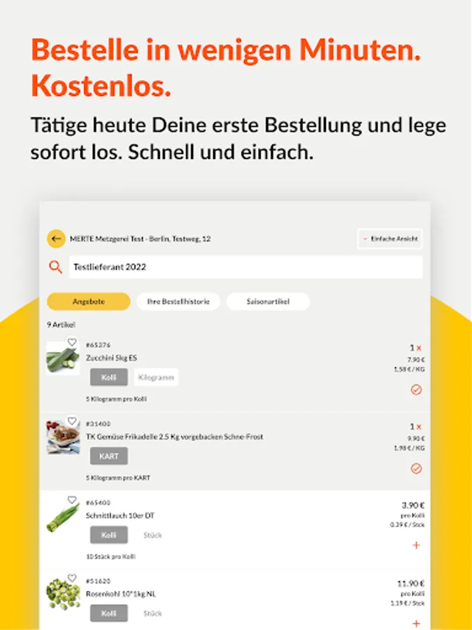 With the Chefslist app, restaurateurs can concentrate on the most important thing - preparing great meals for guests. Chefslist supports you with the orders from all your suppliers. With Chefslist, you can easily create your own order templates that make sense for you: All suppliers in one template, one template per supplier or any combination. And if your colleagues want to order, that's no problem either: Just put together a team with different authorization levels so that all colleagues can participate. Once the order has been placed, you can use our intuitive order history to see in real time which suppliers have accepted your order, when it is being prepared and when it is expected to arrive.