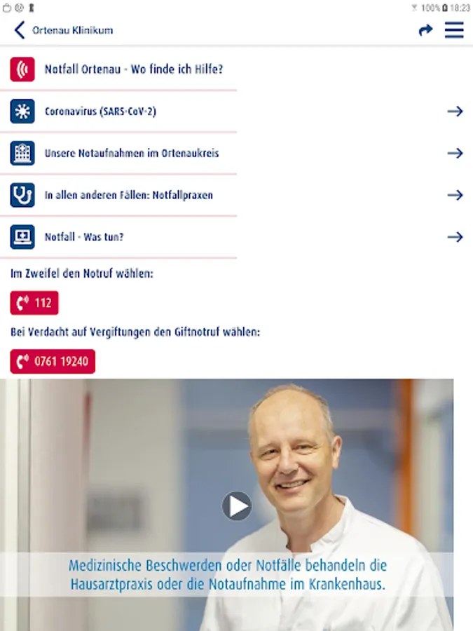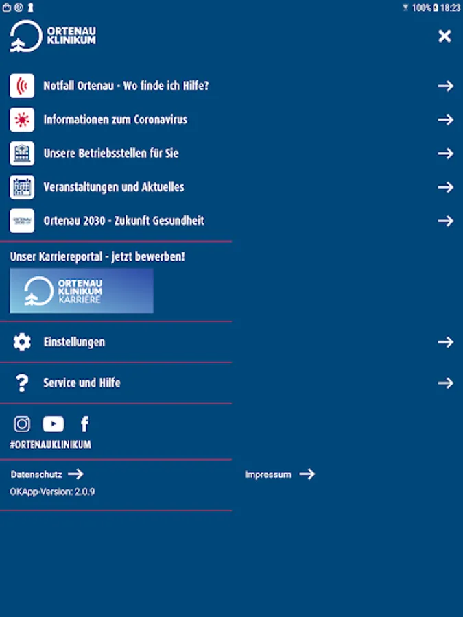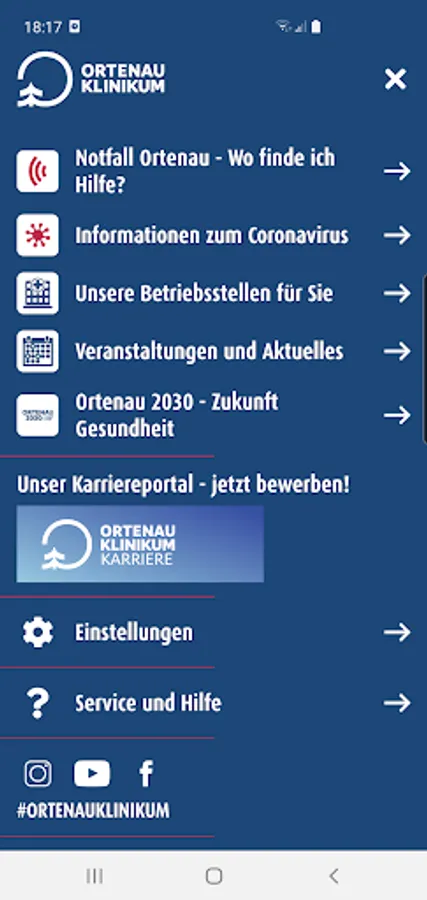OKapp provides users with information on four major subject areas: "Emergency Ortenau - Where can I find help?", "Our specialist clinics for you" and "Events and the latest news". Another focus of the mobile application is on information on the current structural reform of the clinic network "Agenda 2030 - Future Planning". This means that users of the app can also get mobile information at any time about the background and the most important milestones in the further development of first-class, outpatient health care in the Ortenaukreis. With an area for interested job applicants and trainees, which is shown in the menu, the Ortenau Clinic lives up to its role as a large, attractive employer in the region with around 5,700 employees.