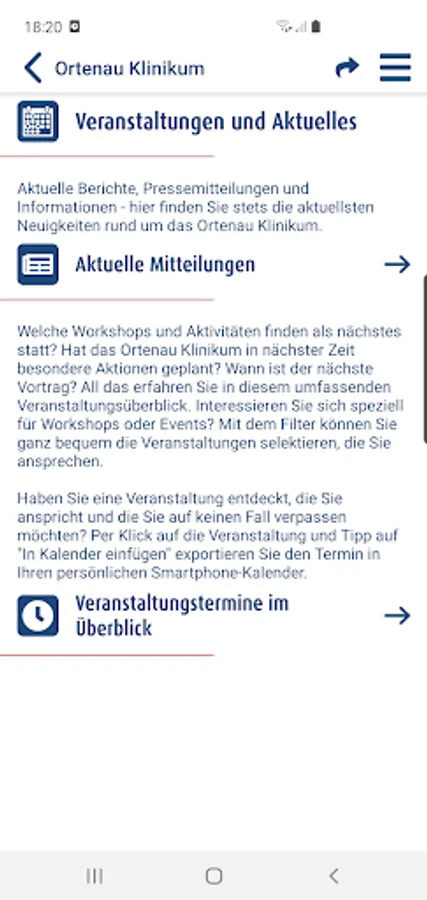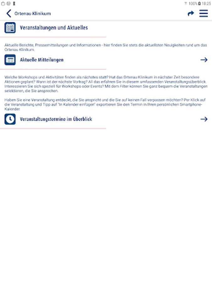 Much of the information available in the app can be compiled individually according to the needs and interests of the users. If you want, you can, for example, only view the dates that are of interest to you from the around 100 lectures offered by the experts at the Ortenau Clinic as part of the Ortenau Health Academy and thus personally configure the diverse program of lectures: If you are interested in joint replacement and cancer treatment, or rather on topics like mindfulness and meditation? With the OKapp, users compile their personal event calendar and are informed in good time about the desired events by “push message”. It is also possible to limit the extensive overview of the existing specialist clinics to individual hospitals in the network, or to filter official messages and announcements of appointments from the clinic group according to specific focal points.