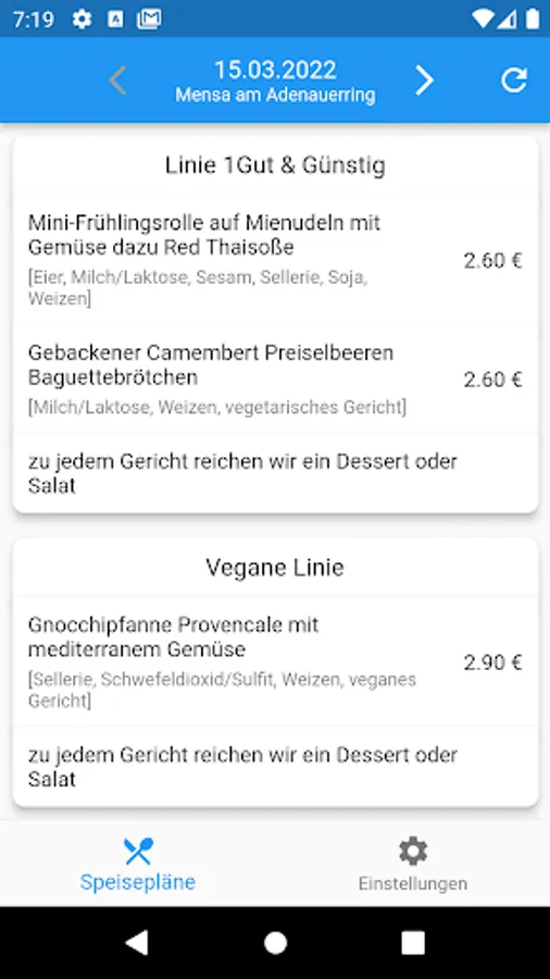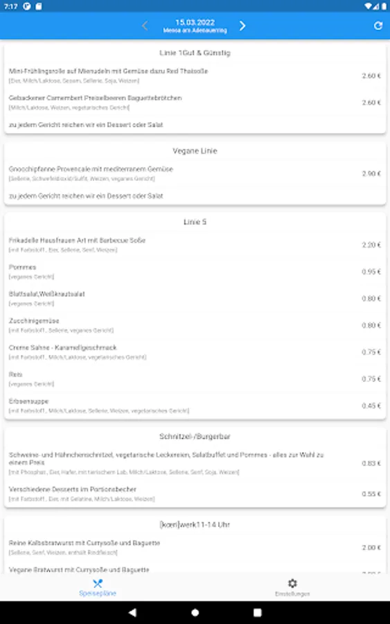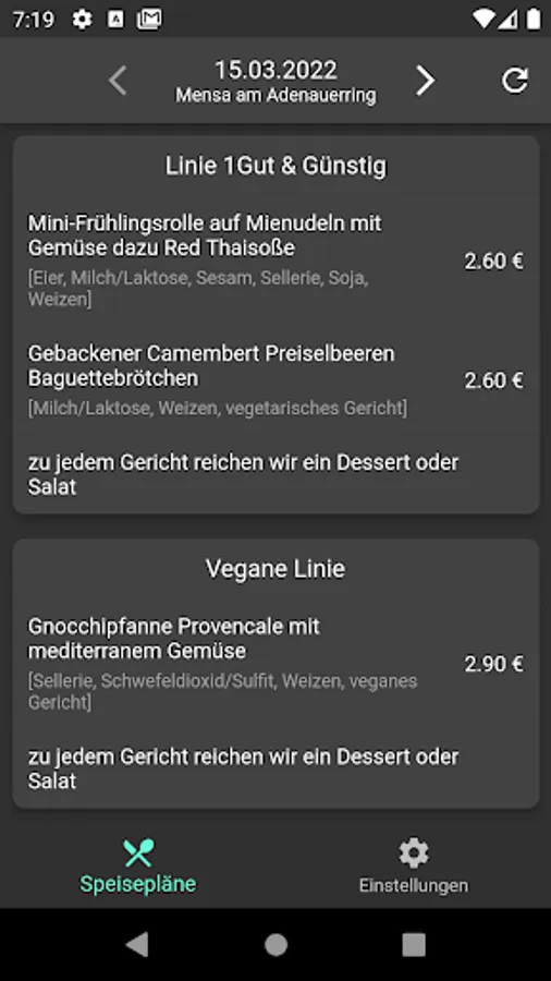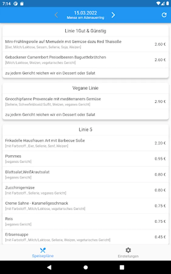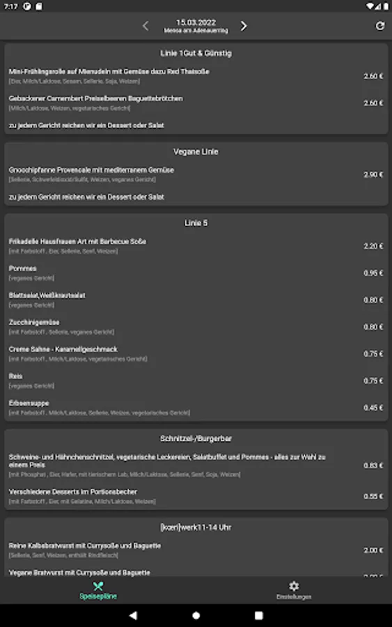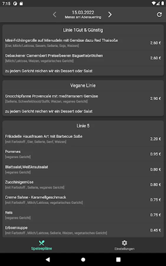 The app enables you to get the menus of supported canteens in Karlsruhe directly on your cell phone, so you don't have to call up the confusing websites again.