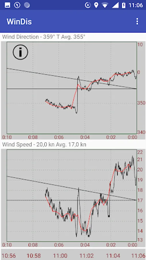 Display for current wind data and a history over 3 hours.