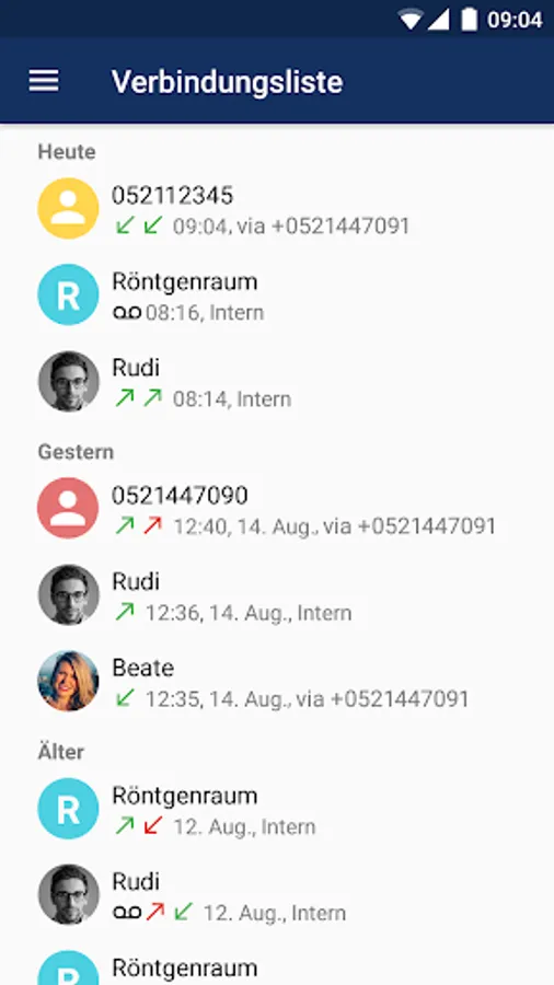 Display of the user-related connection list and assigned contacts of your AGFEO telecommunications system.