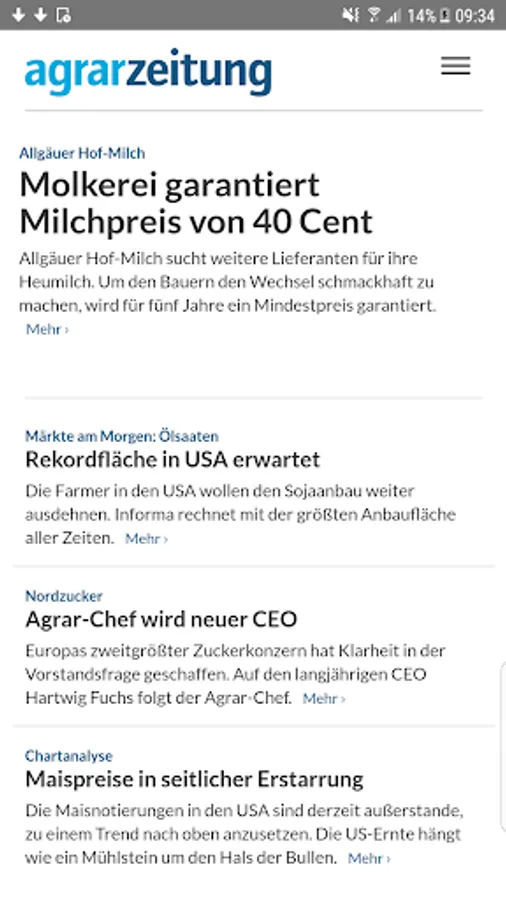 The az online app includes the smartphone optimizes all current news, market data and analysis of agrarzeitung.de.