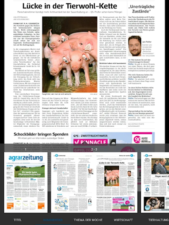 Orientation offer clear, easy-to-use navigation aids such as a FlipView function to quickly look through all the pages in miniature format or any time einzublendendes article directory. And who does not want to miss also the latest news is always just a click away from www.agrarzeitung.de.