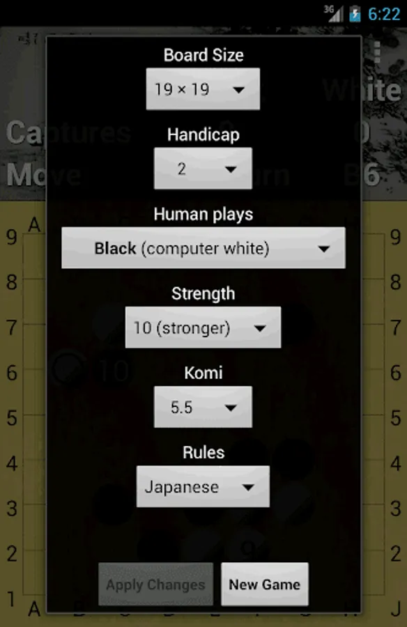 - adjustable handicap and Komi