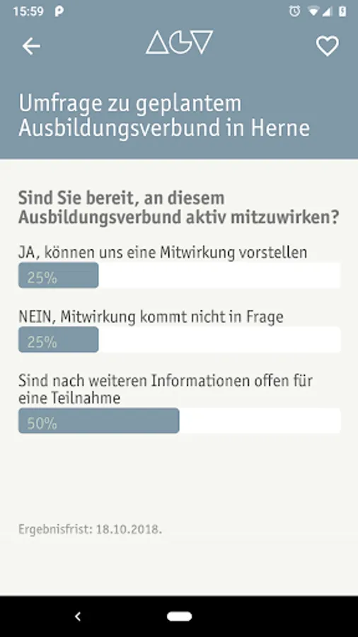 We regularly ask our members about various topics in the world of work and use the results for our press and public relations work. You can vote directly within the app and watch the voting results, of course, anonymized.